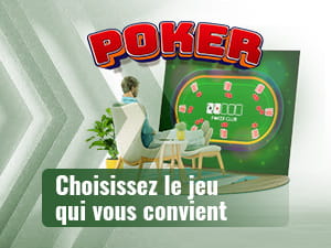 Vous pouvez choisir un tournoi au choix ou prendre part à une partie de cash game selon les limites souhaitées